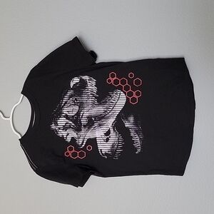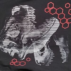Has T rex looking fossil graphic on front. Honeycomb pattern at the top and bottom. Great condition.