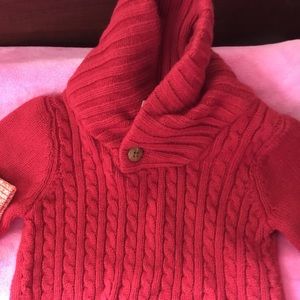 Unisex. Orange zip up hoodie size 6-12 months. Unisex. Red sweater, never used, tag was ripped off, by crazy 8. Size 12-18 months. Smoke free home.