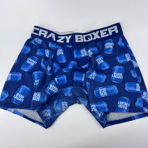 Experience comfort and style with Crazy Boxer blue boxer briefs, featuring a fun Bud Light design. Perfect for everyday wear.