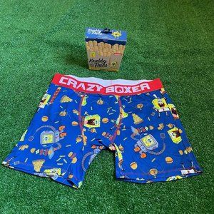 Officially licensed Crazy Boxers SpongeBob SquarePants Burgers Boxer Briefs in Fry Box. These blue "Crazy Boxer" Briefs are made from polyester and feature a "SpongeBob SquarePants" and burgers all-over print with an elastic waistband. Comes in a fun Fry Box. Features: