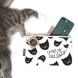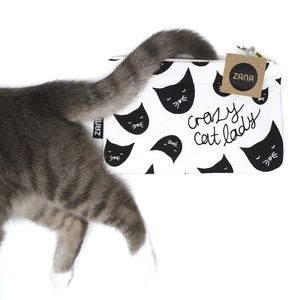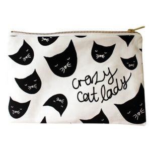 Brand new with tags! Crazy cat lady canvas zippered pouch/clutch.