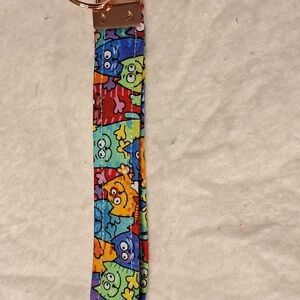 Stylish 6" wristlet key holder with a crazy cats pattern, perfect for organizing your keys. Features a bright blend of red, yellow and orangetones for a great look.