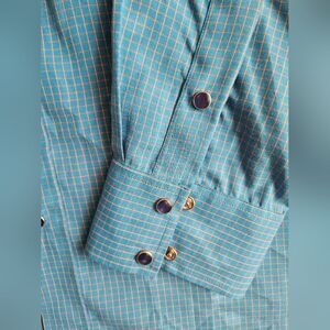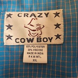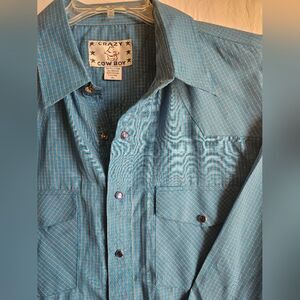 Crazy Cowboy Shirt Adult XXL Pearl Snap Turquoise Checked Western Rodeo GUC