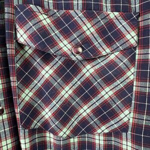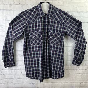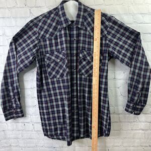 Crazy Cowboy Shirt Men L BlueRed Plaid Button Up Long Sleeve Western Pearl Snap