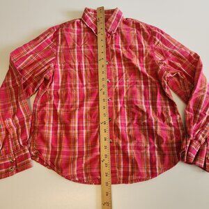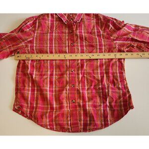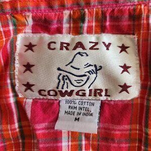 Crazy Cowgirl Shirt Button Up Red Plaid Western Long Sleeve Cotton Womens Medium