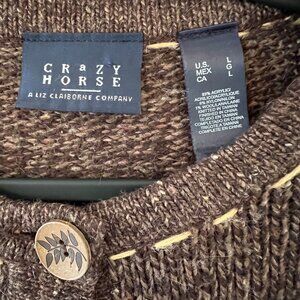 Crazy Horse A Liz Claiborne Company Brown Cardigan Sweater, Size Large, EC!