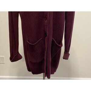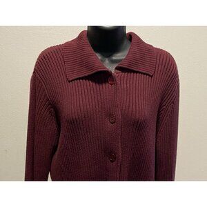 The Crazy Horse A Liz Claiborne Company Women's Size M Long Sweater in Burgundy is a stylish and versatile addition to any winter or fall wardrobe. This heavyweight cardigan features a collared neckline, button accents, and a ribbed pattern, making it perfect for various occasions like casual outings, workwear, and even parties or cocktails. Made from 100% cotton with a tight-knit fabric type, this sweater is machine washable and boasts a regular fit. The long sleeves with cuffed details and the vintage-inspired Crazy Horse theme add a touch of character to this classic and timeless piece. Pit to pit meat 19.5 inches, shoulder to hem 32.5 inches. Preowned good condition sweater does have piling but still very good shape. Thanks for looking, feedback is appreciated. Visit our store for more bargains and unique items. If you have any issues with your purchase, please let us know as soon as possible so we can make it right.