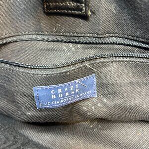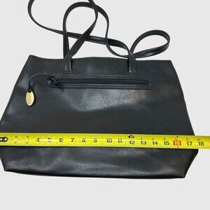 Crazy Horse Black Faux Leather Tote Bag With Double Straps & Zipper Closure