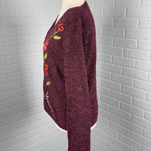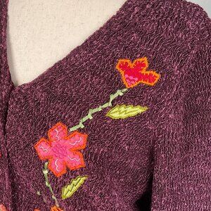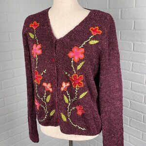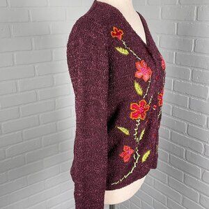 Crazy Horse Cardigan Womens Small Purple Floral Texture Quilt Nylon Sweater VTG