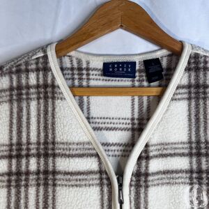 Crazy Horse Fleece Sleeveless Plaid Zip Up Vest Layering Fall Preppy Size Large