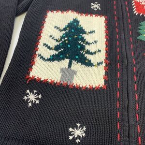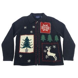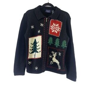 Crazy Horse Liz Claiborne Christmas Cardigan Sweater Full Zip Collar Womens LP.