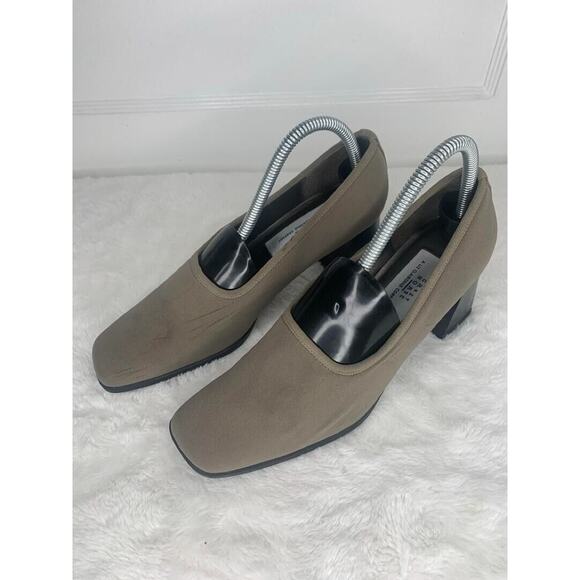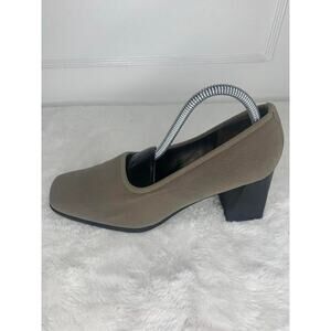 These elegant Crazy Horse Liz Claiborne heels feature a sophisticated square toe design, complemented by a sturdy block heel. Ideal for professional settings, these shoes add a touch of class to any ensemble. The neutral beige color ensures versatility, making them a reliable choice for various outfits.
