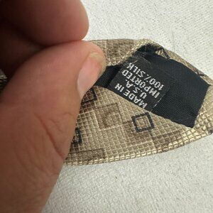 Minor fraying at back seam and light wear on tip of tie