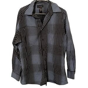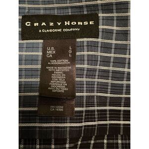 Crazy Horse Mens White & Black Grid Print Long-Sleeve Button-Down Shirt Large
