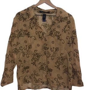 Crazy Horse Plus Size 14 Sheer Boho Brown Tan Button Up Blouse Top