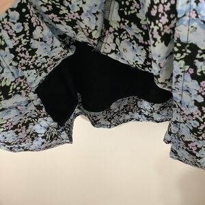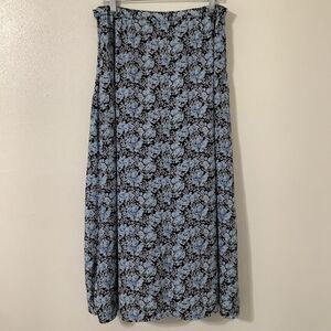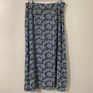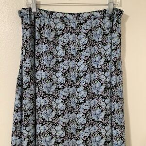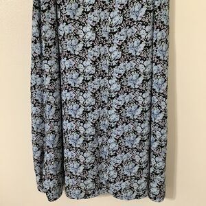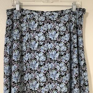Dark Fairycore Whimsygoth Grunge Witchy Witch Aesthetic Romantic Goth Black and Blue Floral Flower Stretchy Back Mid Length A Line Skirt with Side Zipper and Button Closure