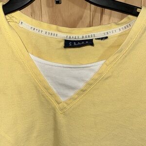 Elevate your casual wardrobe with this vibrant yellow sweatshirt from Crazy Horse, featuring a stylish cut-out design. The 3/4 sleeves offer a comfortable fit, making it perfect for layering or wearing on its own. Crafted with attention to detail, this top combines a modern style with a classic sweatshirt feel.