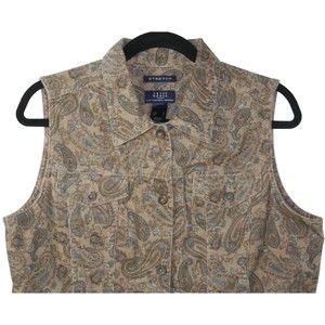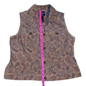 Crazy Horse a Liz Claiborne Company Stretch Corduroy Paisley Vest Sz M Brown