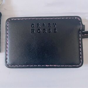 Such a cute set! Matching wristlet and keychain. Black with multi colored fleur-de-lis all over it. Pink stitching. Inside the wristlet there is a pull out mirror with Crazy Horse branding. Nylon lining. Small pocket on side of wristlet. Zipper closure. Such a bright and colorful and fun set. Matching purse is being sold separately.