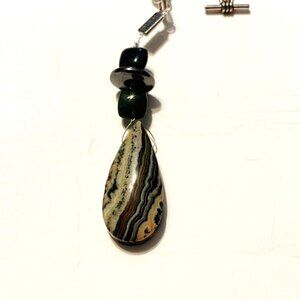 Embrace the swirling magic of happiness with this Crazy Lace Agate Teardrop Pendant Necklace. Measuring 16.5 inches in total length, this enchanting piece features a 1.5-inch cabochon teardrop suspended from a durable stainless steel chain—strong enough to ground your energy, yet elegant enough to elevate your aura.