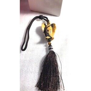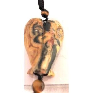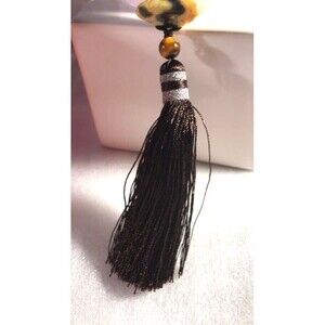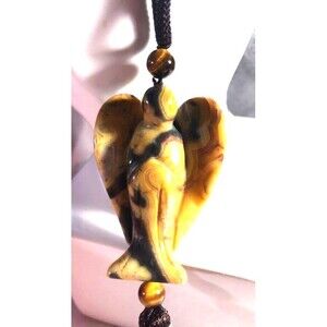 Crazy Lace Angel Car hanging. Perfect to hang from mirror or any where you want! Made with brown cord and has two Tiger Eye beads as accents. Measures just shy of 12 inches from top of cord to bottom of fringe.