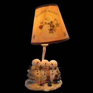 Whimsically cute resin snowman trio night light. Good working order. Some discoloration on the inside of the shade due to use
