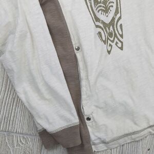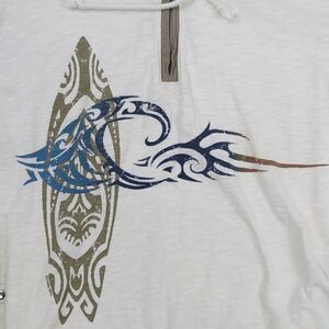 Crazy Shirts Cream Color Hooded Long Sleeve T-Shirt Pockets 1/4 Zip Pullover Sz