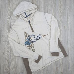Crazy Shirts Cream Color Hooded Long Sleeve T-Shirt Pockets 1/4 Zip Pullover Sz LG