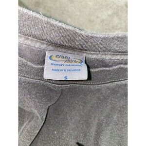The shirt is available in size small and has a crew neckline with short sleeves. Its gray color and Hawaiian theme make it a great addition to any wardrobe, especially for those who love to show off their funny side. So why wait? Order now and add this unique and stylish shirt to your collection!
