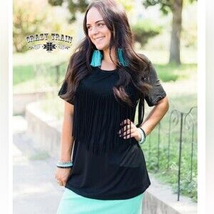 Crazy Train Short Sleeve Top with Fringes in Women’s Size Large Western/Boho