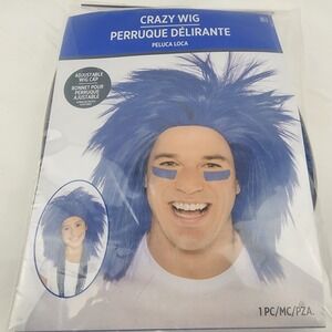 Crazy Wig Costume Assessory Blue Hair Halloween Size Adult Or Kid Rockstar Band
