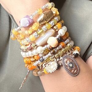 Crazy lace Agate/Laguna Agate and amethyst beaded bohemian bracelet