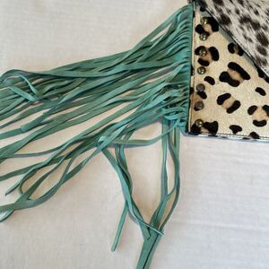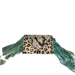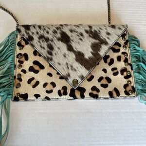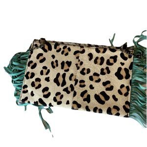 Crazy train Cowhide Leopard Suede Turquoise Fringe Crossbody