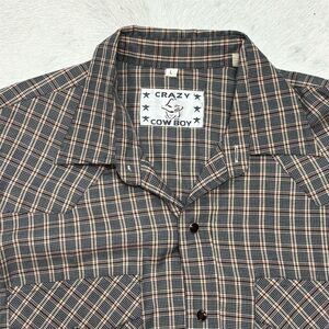Keywords: Crazy Cowboy, plaid shirt, button-up, long sleeve, multicolor, casual wear, pearl snap buttons, dual chest pockets, men's fashion, regular fit, Western style, polyester, viscose, pre-owned, versatile.