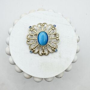 Crazyhorse Liz Claiborne Blue Cat’s Eye Large Open Scrollwork Brooch Pin