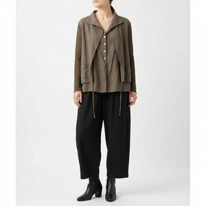 Crea Concept Linen Brown Button Front Layered Jacket Top 12