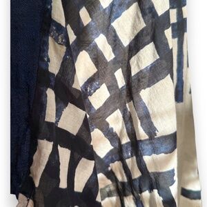 Striking, modern, and effortlessly artsy — this Crea Concept sleeveless tunic features a textured navy linen-blend body paired with a flowy panel in an abstract navy brushstroke print. The asymmetric hemline gives it beautiful movement and that signature sculptural Crea Concept look.