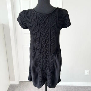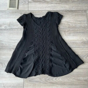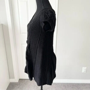 Crea Concept Pure Wool Cable Knit Flared Peplum Hem Short Sleeve Sweater