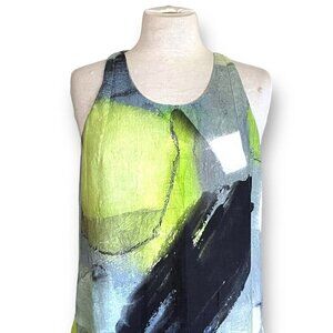 Crea Concept Womens Linen Dress Sz 38 US 6 Green Gray Avant Garde Balloon Hem