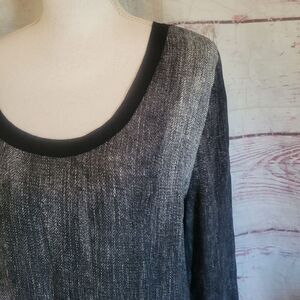 Lightweight and flowy long sleeve top with black, gray, and white mixed front and solid black back. High low hem. In great condition.