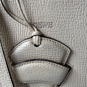 This gorgeous Loewe is in excellent condition with very minor signs of wear. This is my favoriteLoewe. It features a cream exterior with light beige trim. The inside flap and interior are beige. The triangle clasp is cream on one side and beige on the other for a versatile look. Comes with long adjustable shoulder strap. The suede interior is clean.
