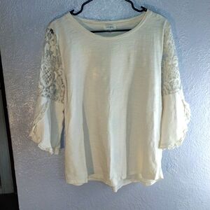 Cream 3/4 Bell Sleeve Embroidered Lace Umgee Top L. Great condition