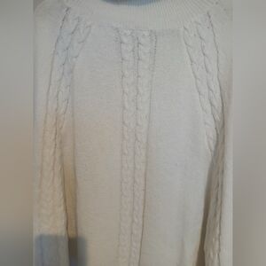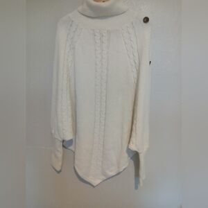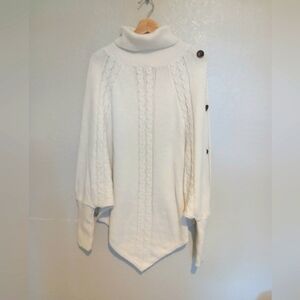 Cream Asymetrical Turtleneck Batwing Dolman Bishop Knit Cozy Sweater Size Large