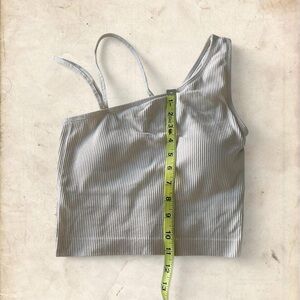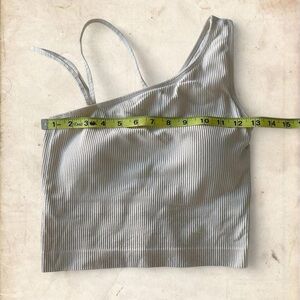 cream, ribbed, asymmetrical, cropped, tank top, padded bra, stretchy, fitted, loungewear, sporty