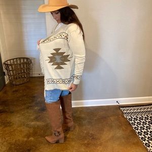 Super cute Aztec sweater in cream and brown. Worn only once. One small peel area at top of shoulder. Smoke free/pet free home.