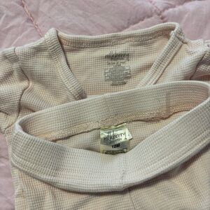 Adorable cream baby outfit set. Includes a short-sleeve top and matching pants. Perfect for everyday wear.