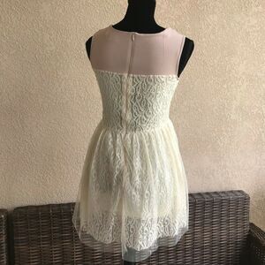 Cream Beige Lace Dress Ballerina Look Zips Up The Back Size Small