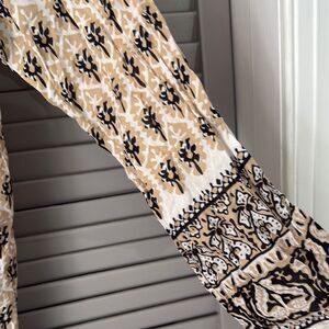 This cream tunic features elegant 3/4 bell sleeves and a flattering V-neckline, perfect for casual or resort wear. The lightweight fabric and relaxed fit make it an ideal choice for warm, sunny days.