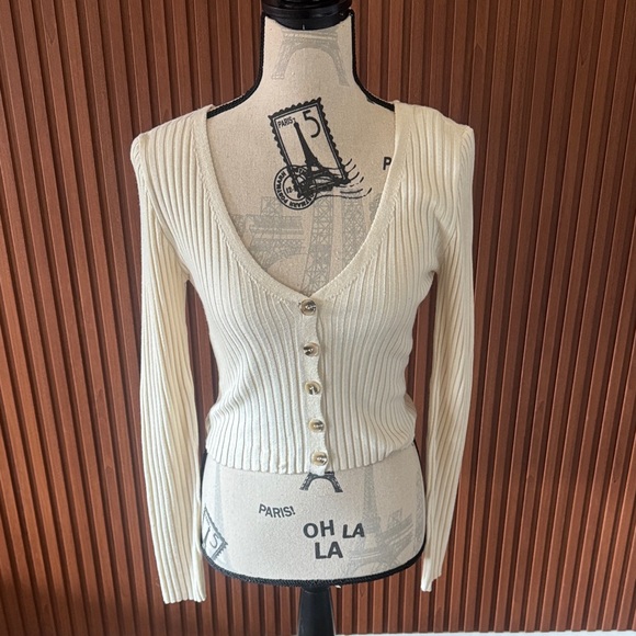 Stylish ribbed button-down top. Long sleeves. V-neck design. Or get this for free with any other purchases.