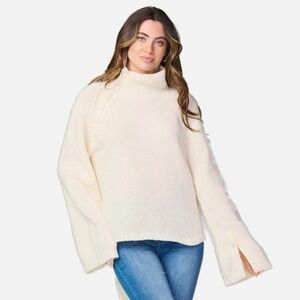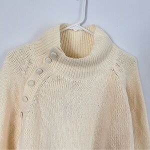 Cream Button Up Turtleneck Chic Long Sleeves Soft Hand Sizes S, M, & L